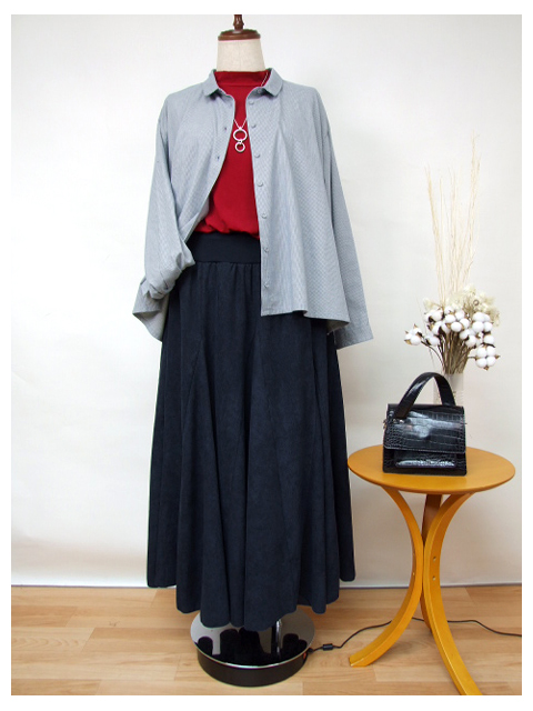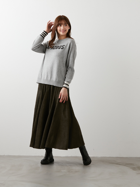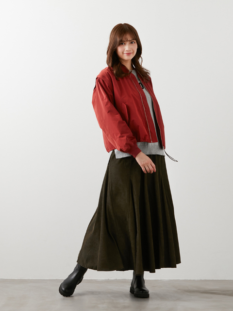 1点投入でコーディネートの季節感がグッと高まる!アルディラの人気フレアースカートに秋のコーデュロイが登場しました!見た目より全然軽くて地厚くなく、さっぱりしたナチュラルな風合いが魅力の素材感◎8枚はぎで裾にかけてたっぷりに広がるフレアラインは足を長く見せてくれる絶妙なバランスで、歩くとゆらゆらと遊ぶ裾がレディ感を高めます。ウエスト部分は伸びのあるリブ使いで、お腹や腰回りはいい感じにスッキリ、そしてリラックスしたはき心地が◎ウエストは3cm幅の平ゴム入りなのでずれ防止にも◎カラー&素材で、秋冬スタイルを確実にアップデートしてくれます。裏地なし。