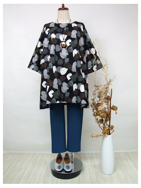 トップスをかぶせてももたつかずフラットで、ふわっとしたチュニックや長めのシャツなどと相思相愛です。