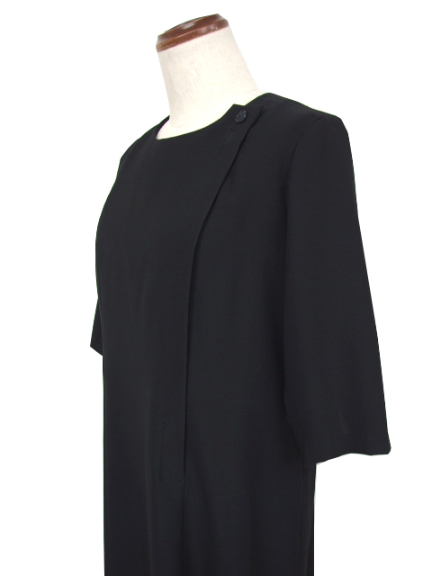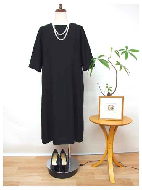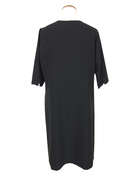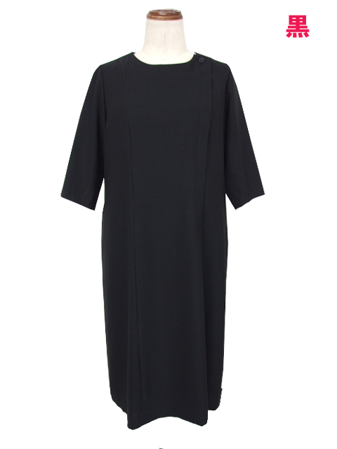 肘が隠れるお袖丈のブラック対応ワンピースです。体の輪郭をすっきりキレイに見せる優秀パターンワークで、女性らしいシルエットに。