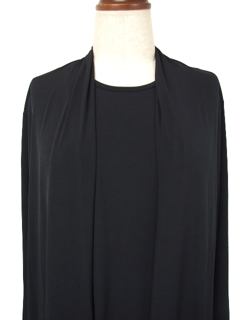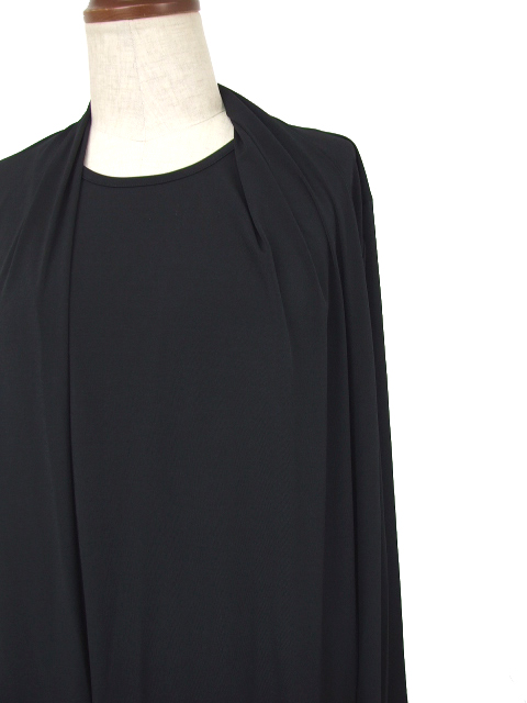 ワンピースに着流しカーデを羽織ったようなルックスですが実は一枚もので、さっとかぶるだけで自然とカタチが出来上がるから不思議◎