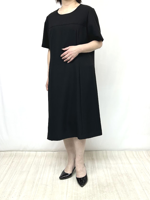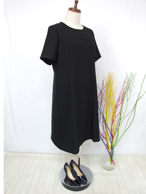 半袖ワンピースはお花のブレードがさりげないアクセントになり、品よく可愛さをオン!