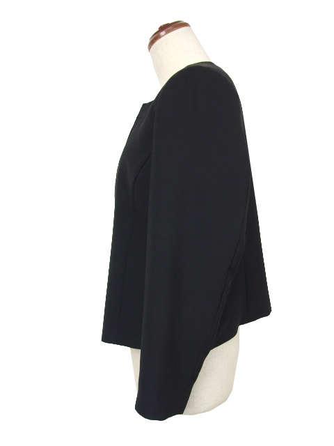 ■cfz0190:ノーカラーブラック前開き7分袖アンサンブル【SEPIA】