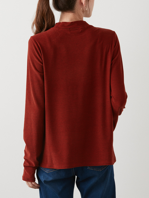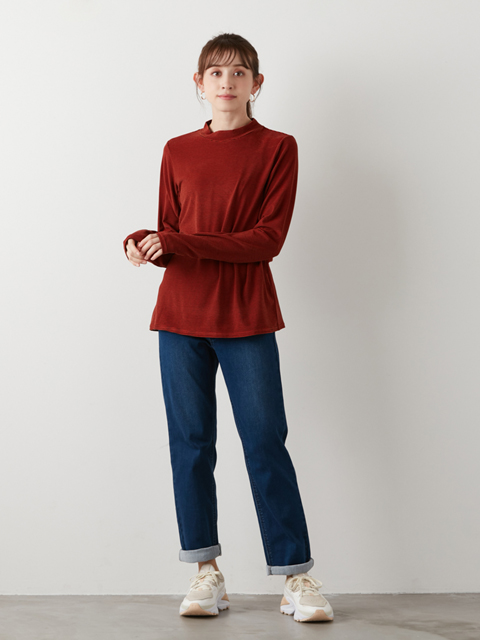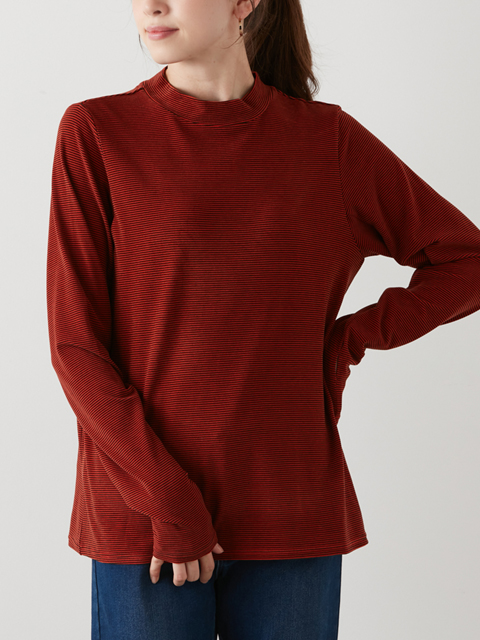 肌に直接触れても気持ちいい柔らかなテクスチャーで、伸びやかで着脱も重ね着もしやすい実力の一枚です。