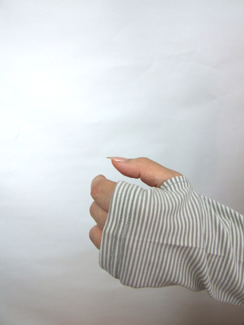 お袖口は親指の出し入れ自在なサムホール(指穴)仕様で、袖丈を長めに設定し、クシュッとしたニュアンスが可愛いポイント◎