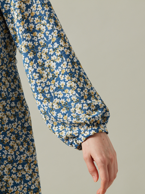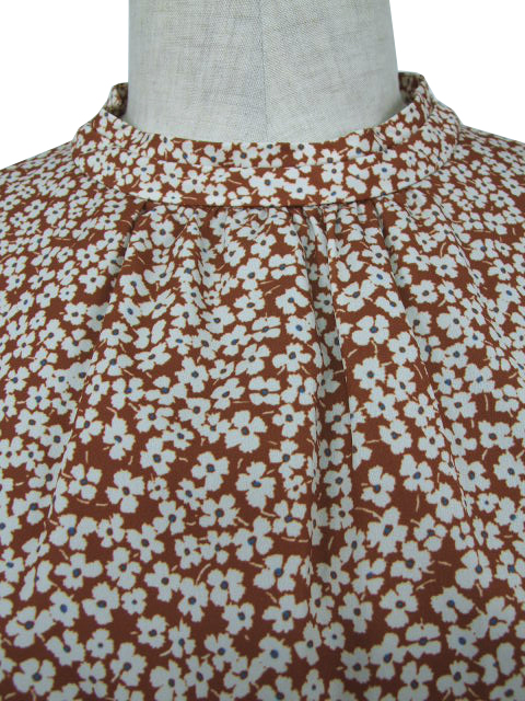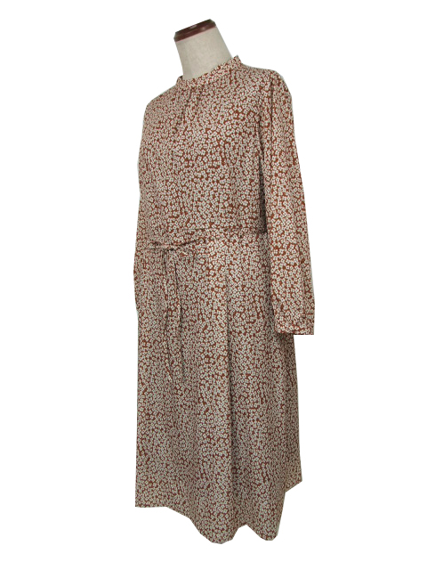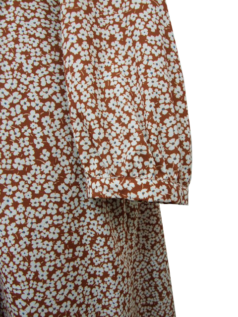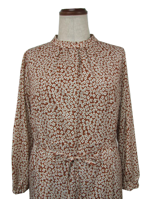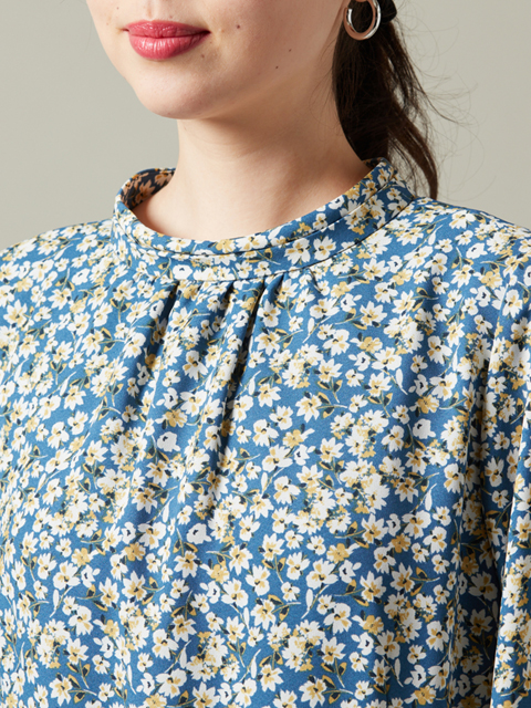 フラワープリントの全体柄で、品のいい華やさがありつつ、甘さ控えめの大人な一枚に仕上げました。