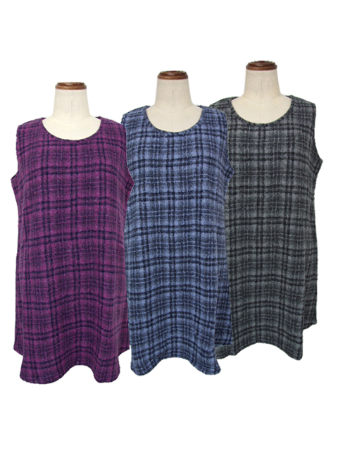 cty0900:ループヤーンチェック柄チュニック【Tasha ruby】
