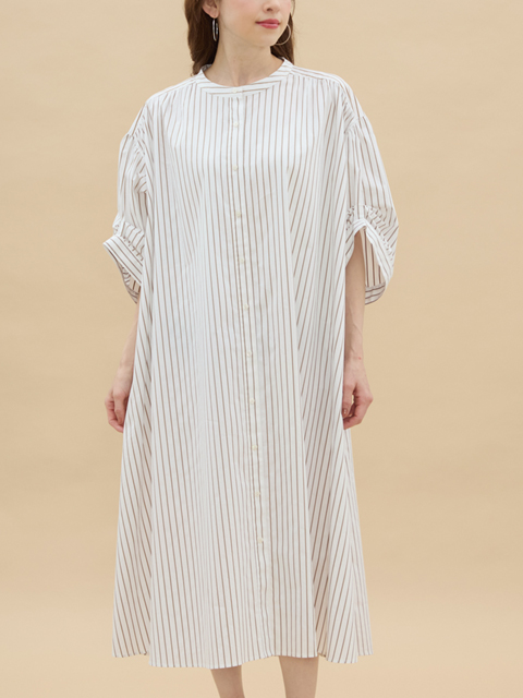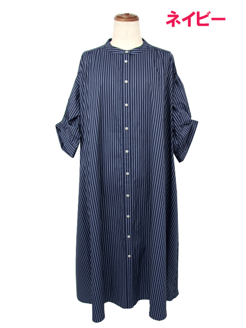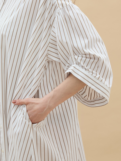 ctz0610:ストライプハーフスリーブシャツワンピ【ALDILA】