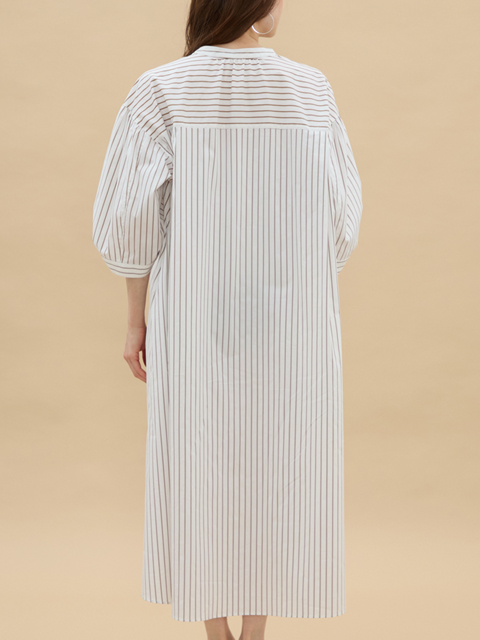 バンドカラーできちんと感もあるのでお仕事にも使えるし、前を閉じてワンピースにも軽く羽織ってロングシャツにもなり、コーデをとことん楽しめる優秀アイテムです。