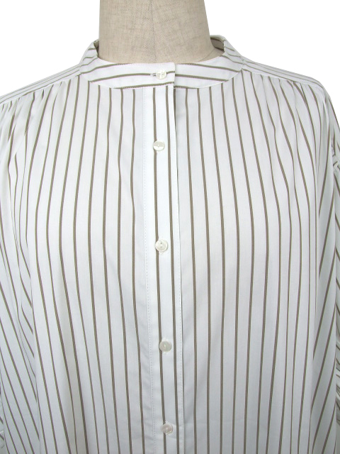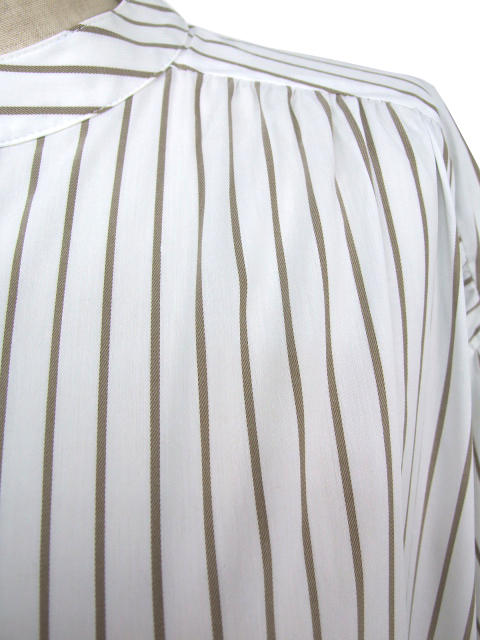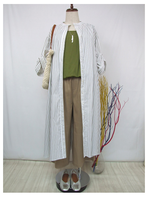 春夏スタイルに馴染む配色と、縦を主張する上品ストライプがまさに大人女子にぴったりな一枚です。