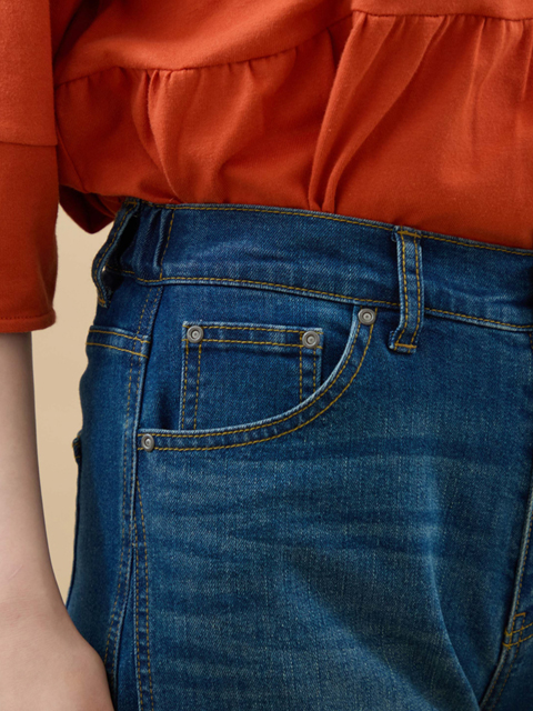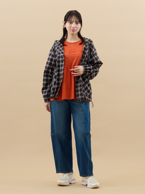 太ももや膝まわりがゆったりしたリラクシーなシルエットで気になるボディラインをカバーし、裾に向けて緩やかにすぼめて美シルエットへと導きます。