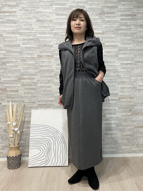 腰回りをすっきりとさせ、ストン落ちるラインで縦長効果もあり◎