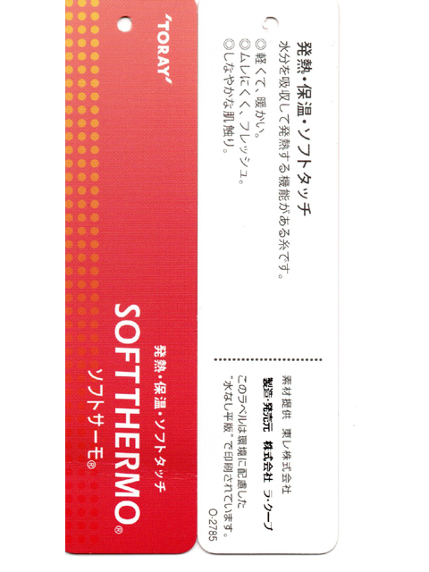 身生地は水分を吸収して発熱する機能糸を使ったソフトサーモを使用。