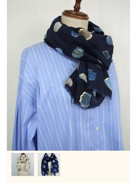 dga0660:箔使い水彩ドット模様ストール【QUINTY】