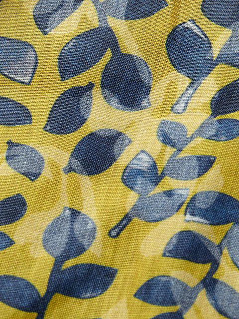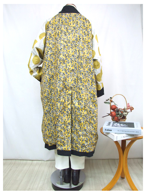 表面はハリのある綿ナイロン素材でカジュアルに、裏面は葉っぱ大玉プリントで遊び心をプラスしました。