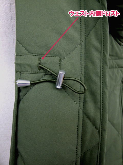 前ウエスト部分は内側がドロスト仕様で、クシュっとさせると保温にもアクセントにもなります。