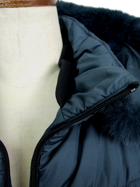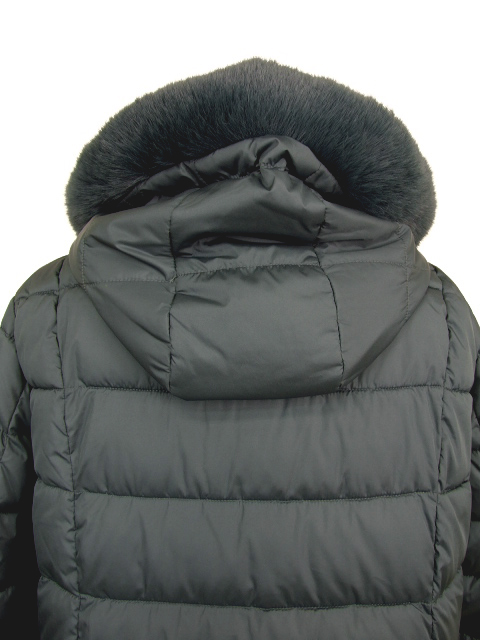 前ファスナー。フード、ファー取り外し可。前ファスナー付きポケット。総裏付。