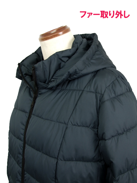 ■dja0925:ファー&フード取り外しロング丈中綿コート【早得+ 1662ポイント】【SEPIA】