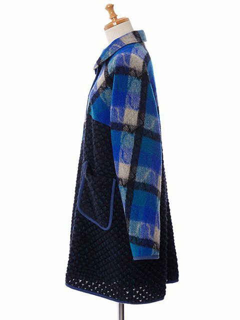 チェック柄を縦・横・斜めに組み合わせたアシメトリーデザインは、見る角度によって表情が変わる特別感のある仕上がり。