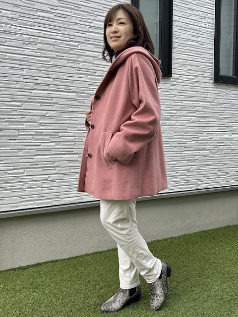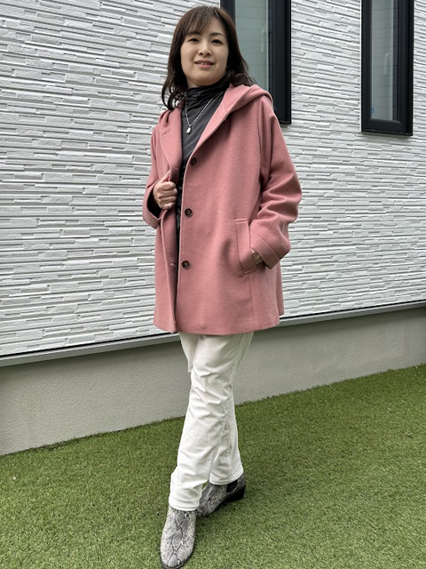 フードがお顔まわりに立体感とニュアンスを演出し、どんなスタイルにも合わせやすい大人のフーデットデザイン!