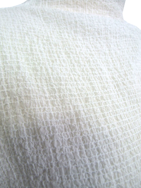 高収縮糸により立体感のあるシワの表情が魅力で、絶妙な透け感があるので、レイヤードも軽やかな印象に仕上がります。
