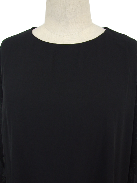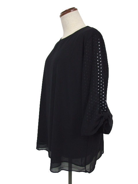 シフォン袖の内側にドット生地を重ねた、奥行きのあるオシャレな見栄えが素敵です。