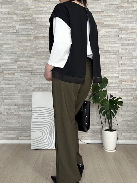 ワイドパンツとの相性がよく、きちんと感を漂わせます。