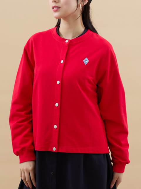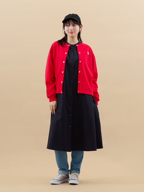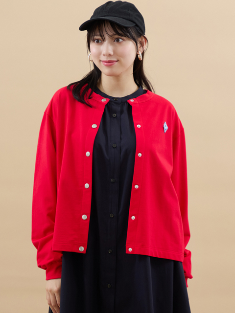 前のメタルドットボタンやリブ使いが可愛くを演出し、さっと羽織れる手軽さで、普段に大活躍してくれる一枚です。
