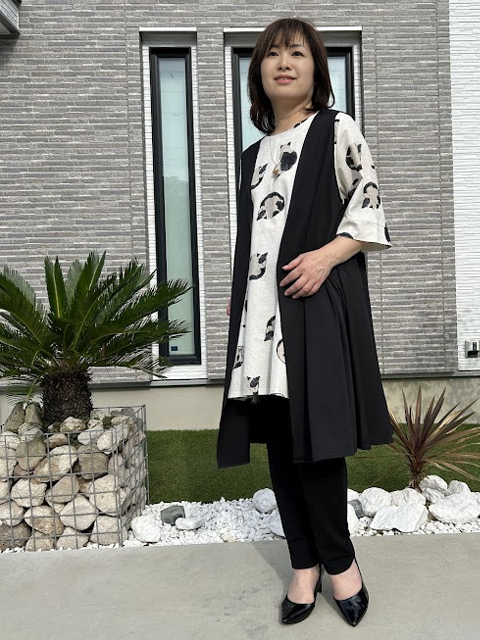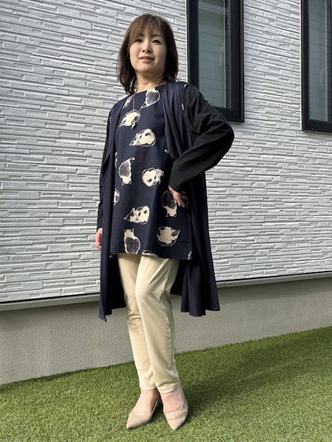 オシャレも体形カバーもどちらも叶う優秀な一枚です。