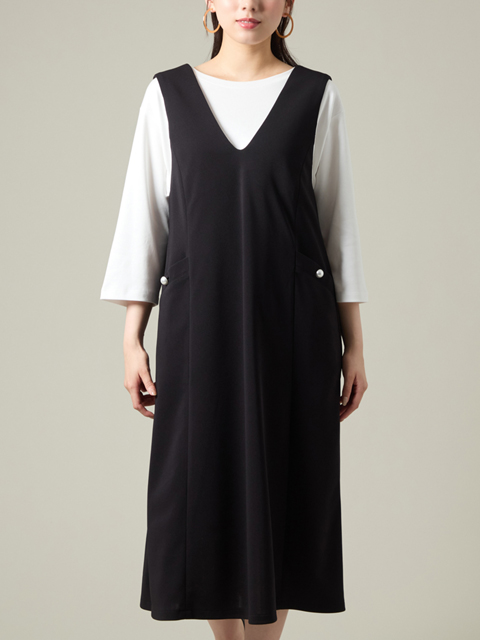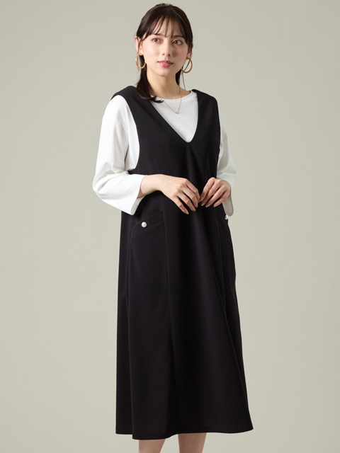 ■dta0490:パール付Vネックジャンパースカ―ト【LA COUPE】