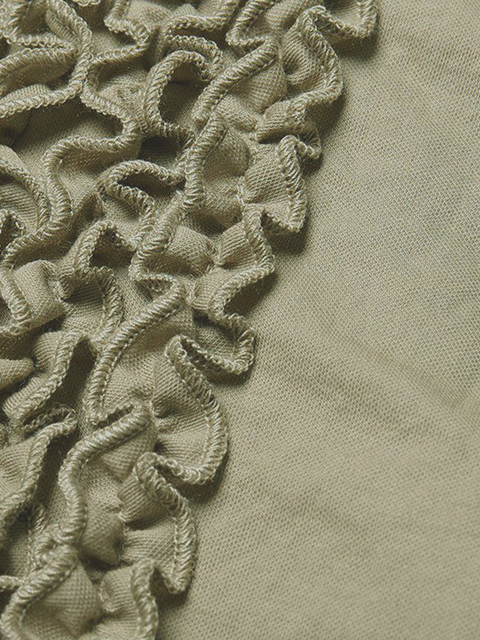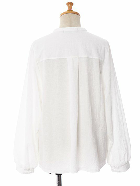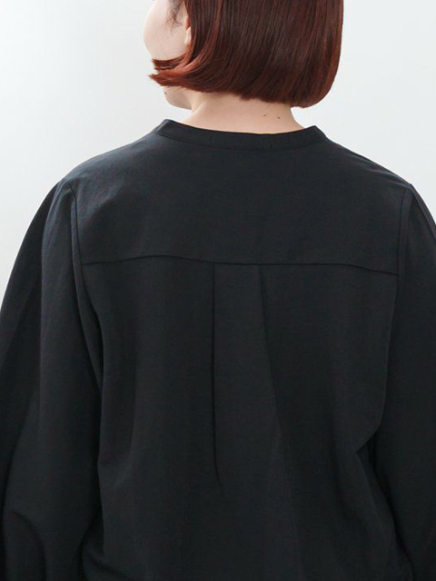 布帛見えする素材ですが、実はカットソー仕立てでほどよい伸縮性があり、一日中ラクな着心地です。