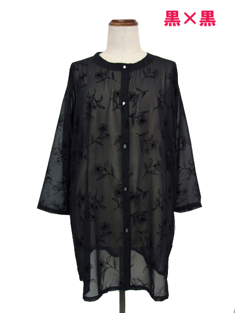dta0515:フロッキー花プリントシアーブラウス【QUINTY】