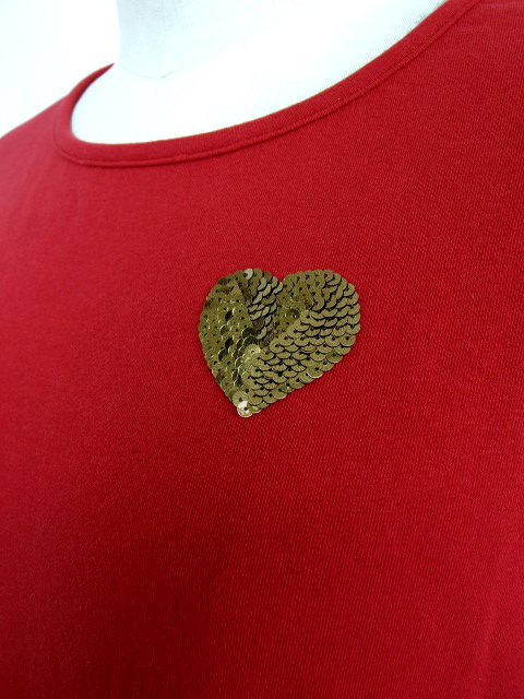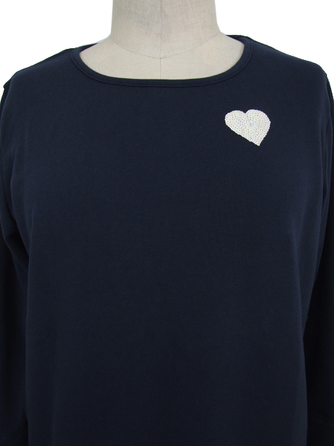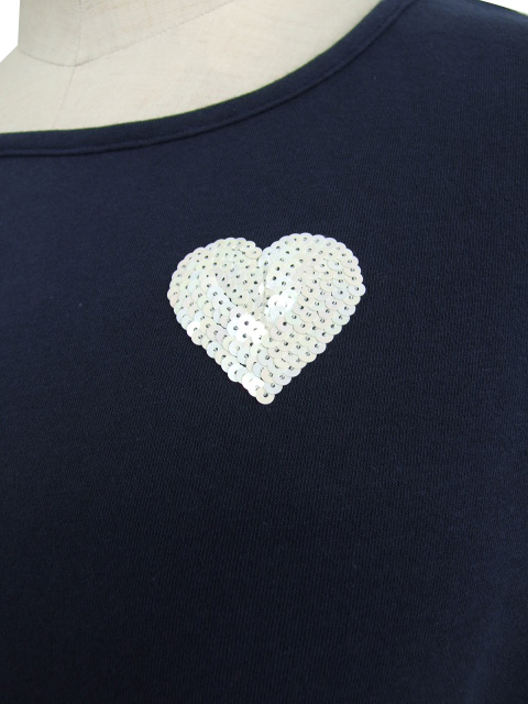 スパンコールのハート柄ワッペンがコーディネートをCUTEに盛り上げ、大人のカジュアルスタイルを満喫できるカットソーです。