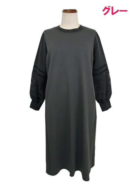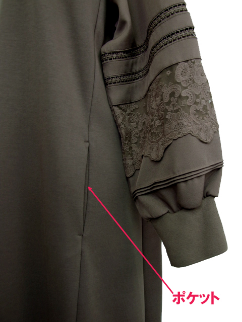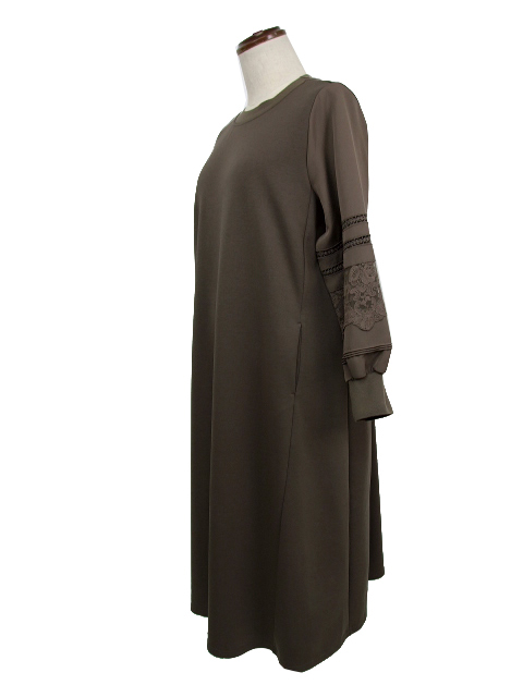 dta0590:袖レースダンボールニットワンピース【SEPIA】