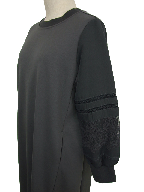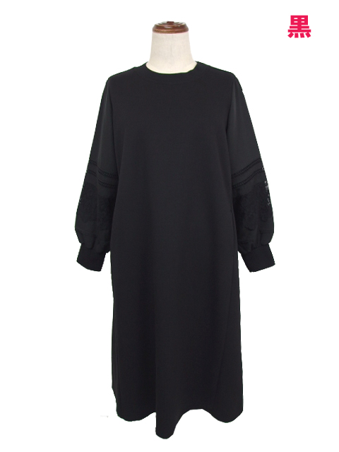 ベーシックなワンピースに、お袖レースや布帛生地の切替など、こだわりのディティールを投入して、ワントーンをオシャレに変身させました!