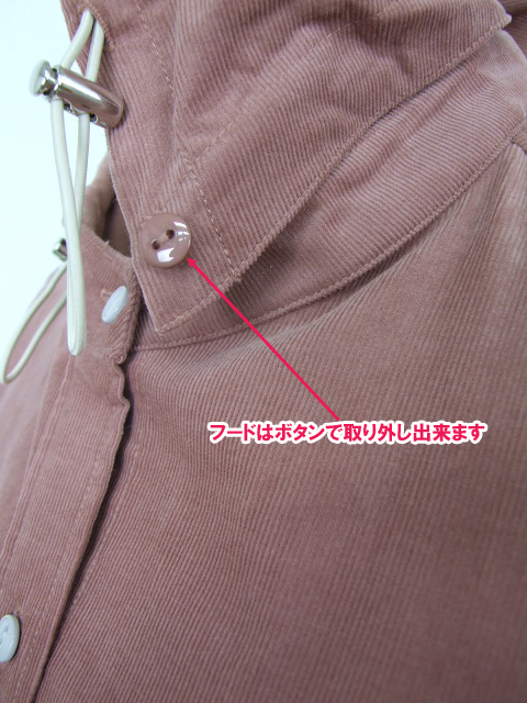 dta0605:取り外しフード付きコーデュロイシャツ【再再販】【ALDILA】