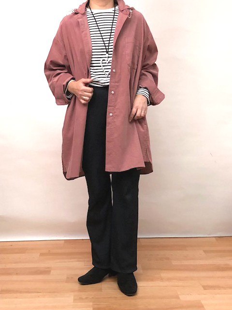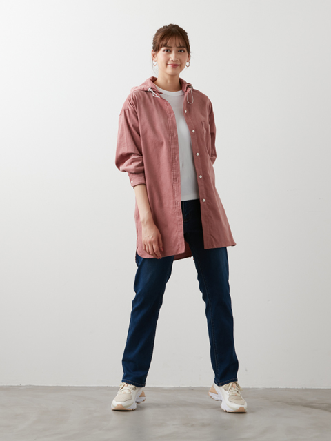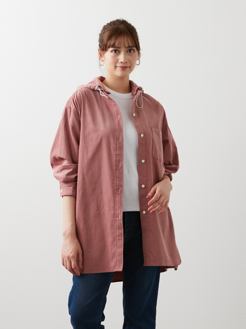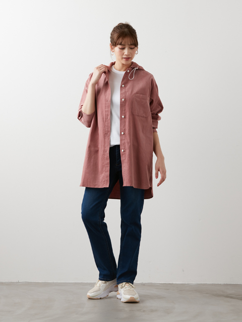 フードを取り外せる2wayタイプで、外せばシンプルなロングシャツとしても楽しめます。