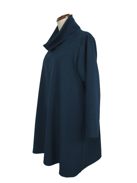 肩はすっきりと、裾にかけて広がるシルエットで、体のラインをしっかりカバーし、伸びはありませんが窮屈感のない着心地が楽しめます。