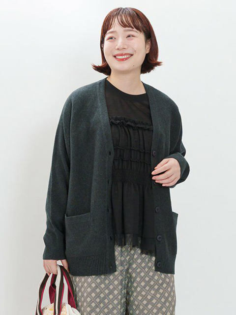 これからの季節に、さっと羽織るだけでスタイルが決まるVネックカーディガン。