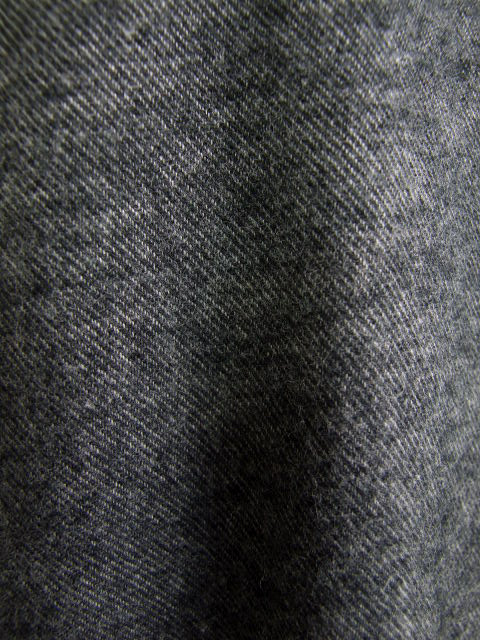 裏地なし。前メタルボタン。裾前後丈違い、ラウンドデザイン。