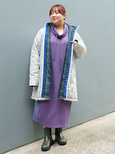 ゆったりとしたシルエットながら、細身のお袖でスッキリ見えするバランスが◎