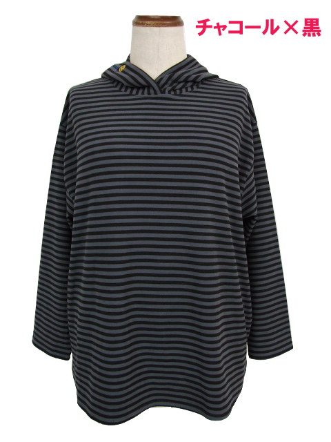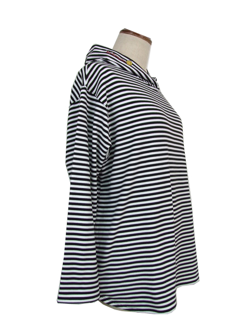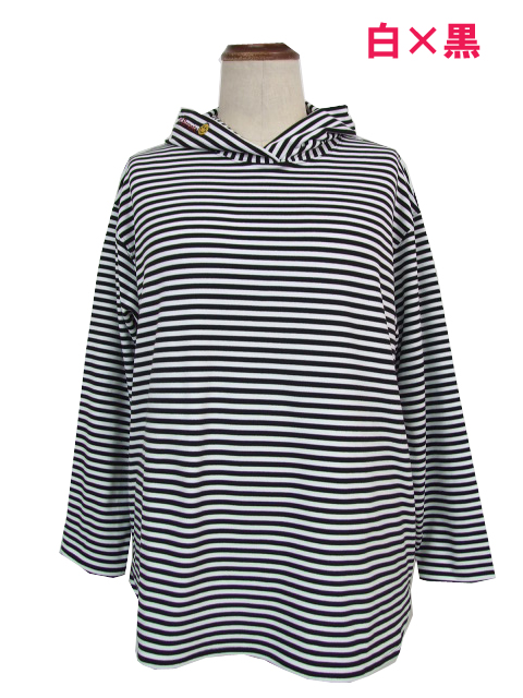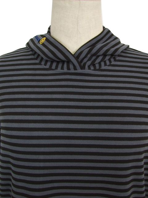 dta0975:スマイル刺繍ワッペン付ボーダーカットパーカー【ALDILA】