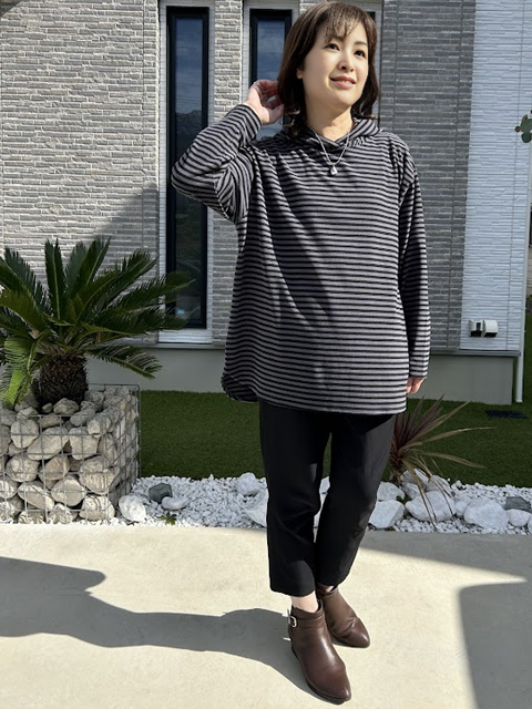 お尻にかかる丈感でパンツもスカートも合わせやすく使い勝手は抜群です。