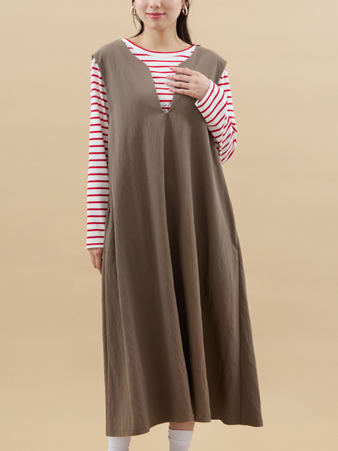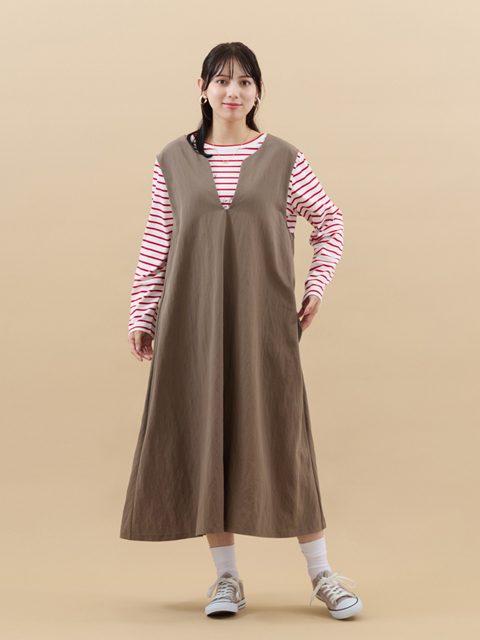 変形ネックやベーシックなフレアシルエットなど品のいい雰囲気に仕上がりました。