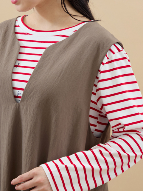 レイヤードももたつかず、さっぱりしたやや薄手素材なので長い季節に活用できるところも嬉しいですね。