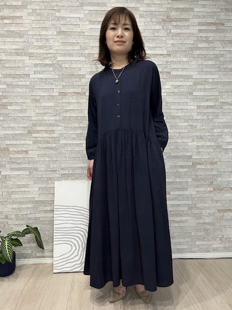 独特のまろやかさとポコポコした爽やかな風合いが魅力のワンピースは無地と花柄でご用意しました。