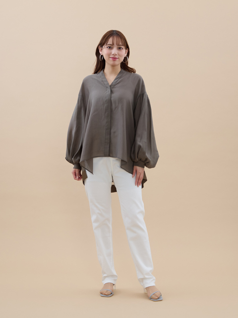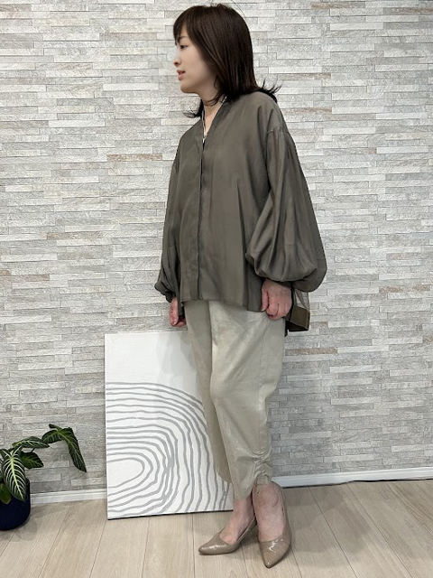 長すぎない着丈なので、ワイド系パンツにもタイト系にもあわせやすく、きれい目にもカジュアルなデニムとも相性は◎