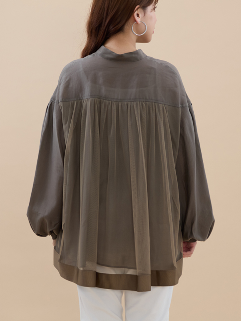 1枚で着映える!チュールを重ねたひと癖ありなニュアンスブラウス。
