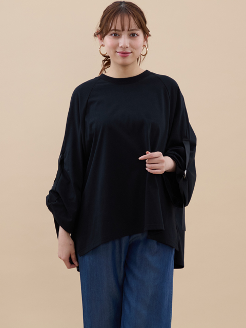 裾は前後丈違いの両裾スリット入りで、ゆったりしたデザインに抜け感ができてオシャレな仕上がりに◎