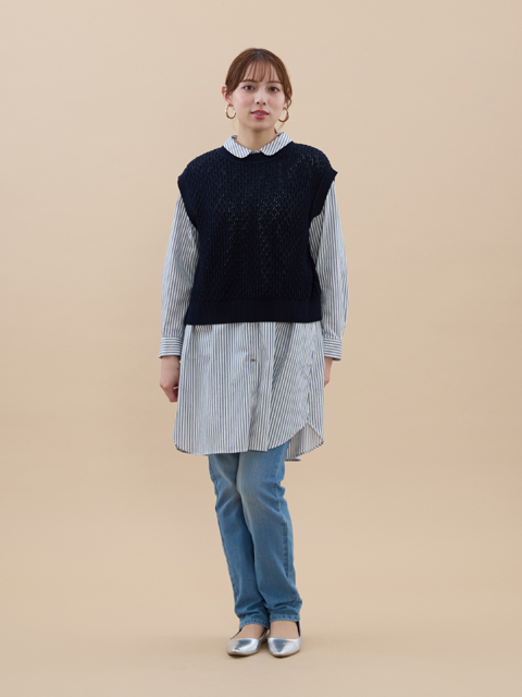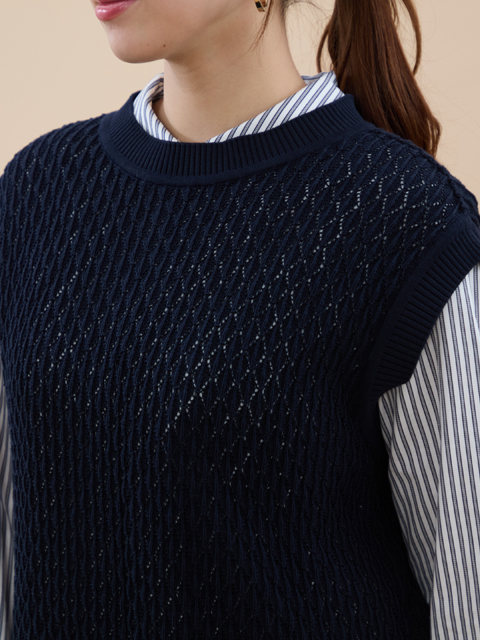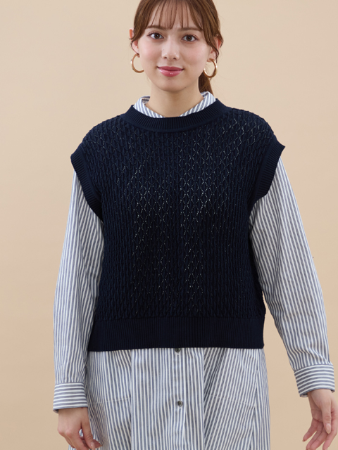 取り入れるだけでトレンド感アップ! 重ねて着るとシャツもカットソーもワンピースも雰囲気が出る魅力的なニットベストです。 優しい雰囲気の編地は、品のいいルックスと柔らかな風合いがGood◎ レイヤードを心地良く楽しめるようアームホールは深めに設計し、もたつかずにさっと着こなせます♪ 後ろは2つボタンのスリットデザインで、脱ぎ着も楽チンだし、いい感じの抜け感でコーデのバランス が取りやすいところも高ポイント◎ スカートにもパンツにも合わせやすく、コーデが楽しくなります。 裏地なし。後最上部2つボタンは開閉可。