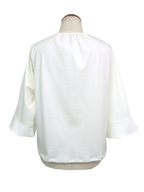 後ろネック部分はゴムギャザー使いで、脱ぎ着も着心地もストレスフリー◎
